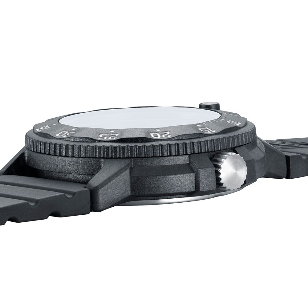 以Luminox專利碳纖維複合材料(CARBONOXTM)所打造、大小恰到好處的43mm錶殼,僅有13mm的超薄錶身、柔軟服貼的PU錶帶,讓整錶僅重50公克,達到絕對的輕量化!而維氏硬度高達550-650的強化礦石水晶玻璃鏡片,以及316L精鋼材質錶冠,不僅能抗衝擊,亦可提供手錶最好的保護。