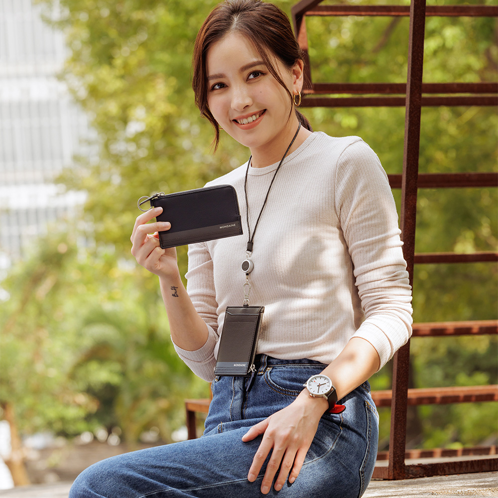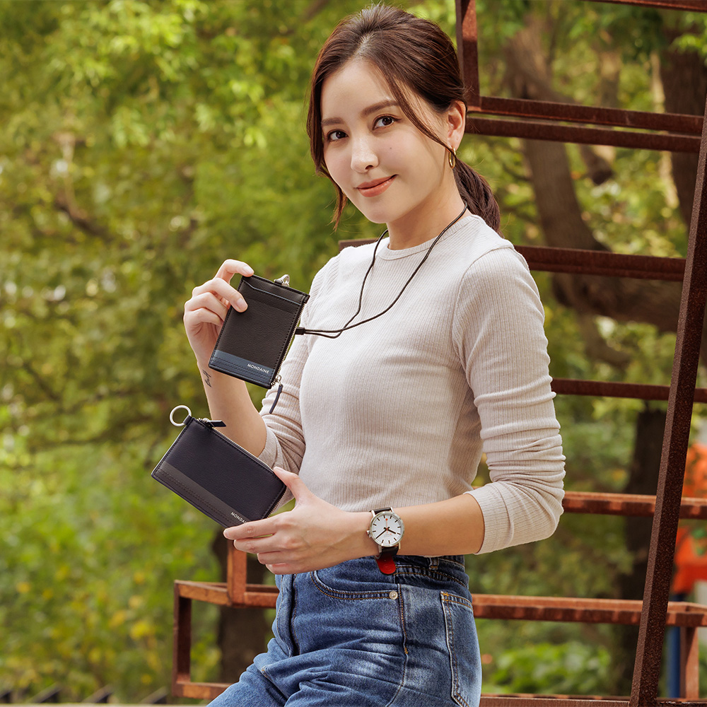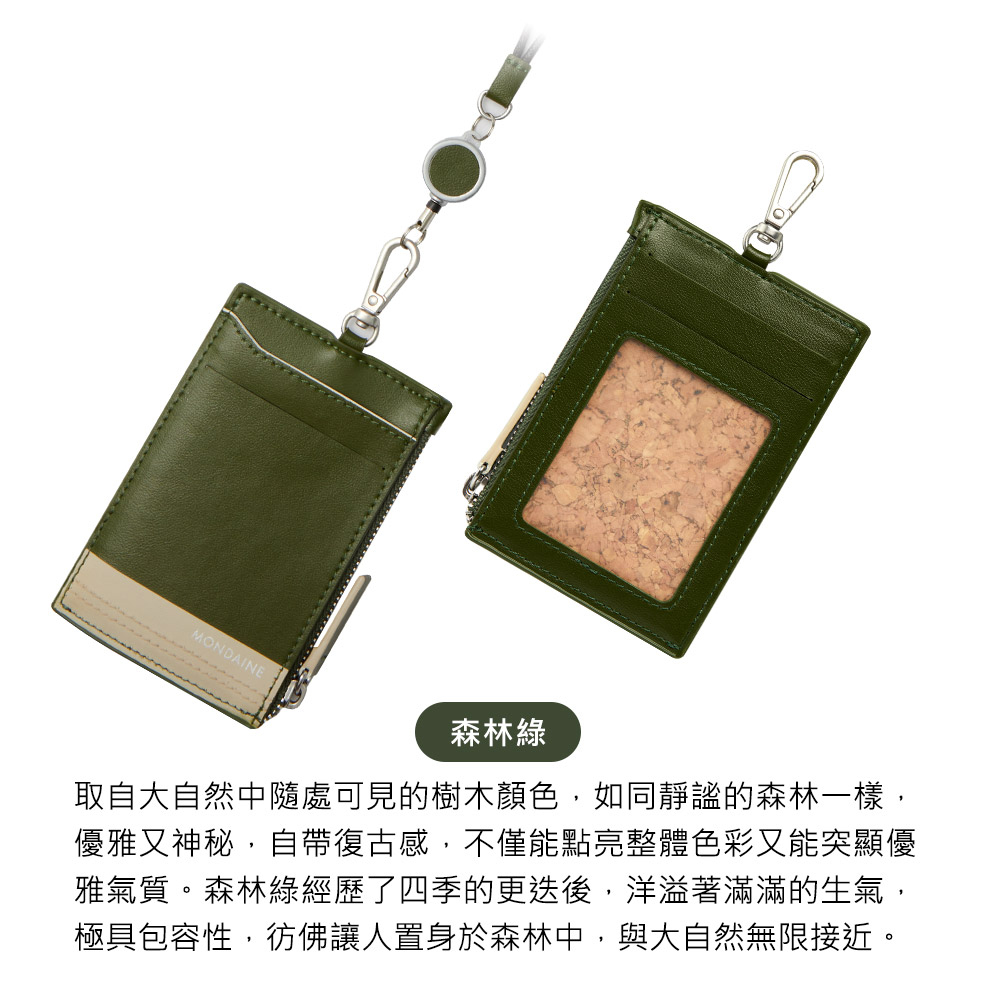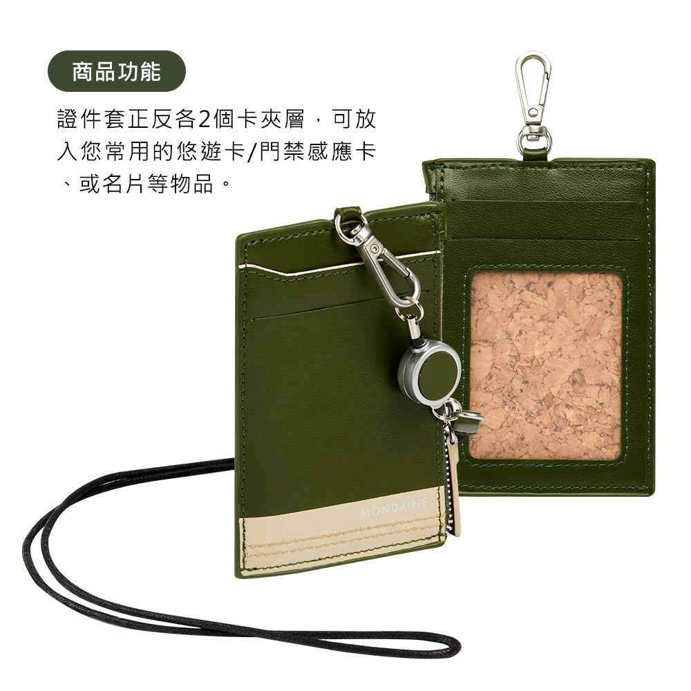 證件套正反兩面共可容納2張卡片,可放入您常用的悠遊卡/一卡通、門禁感應卡、或名片等物品。證件套的側邊設置有拉鏈內袋,可存放零錢、對折紙鈔、鑰匙等小物品。