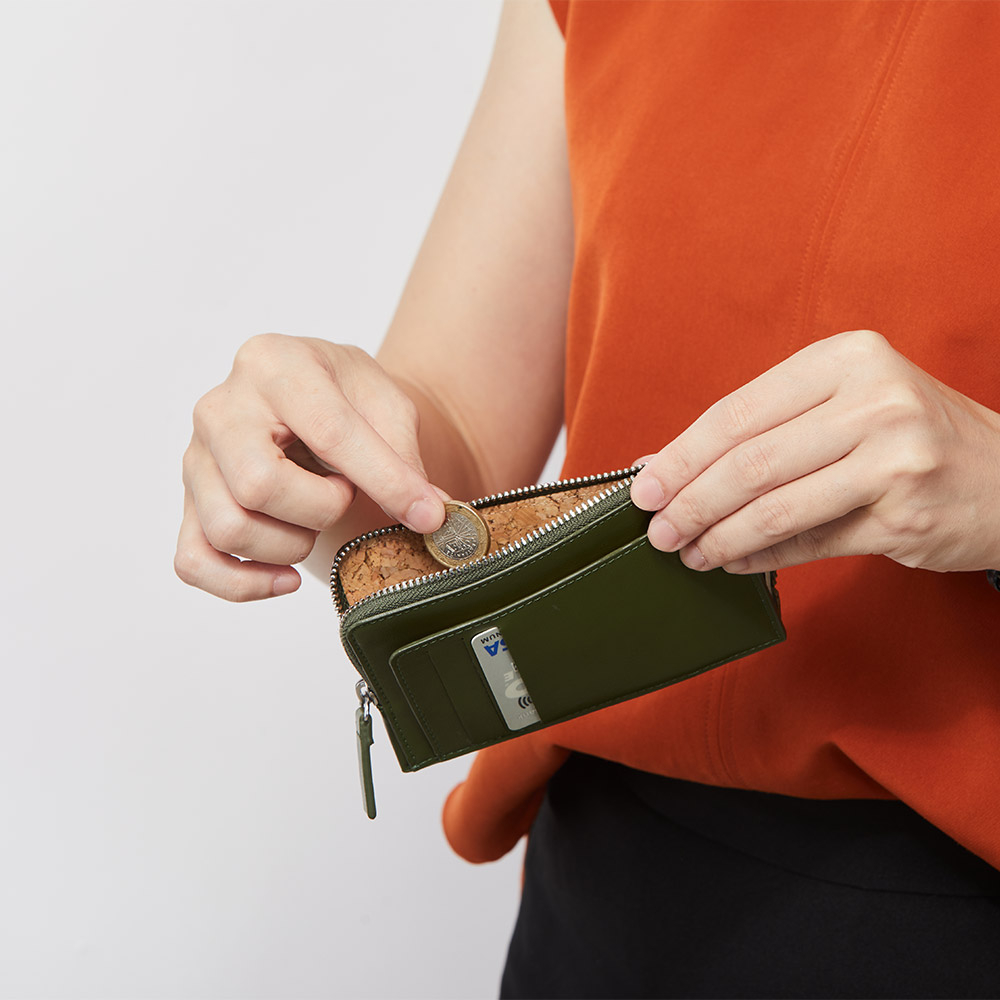 除了仙人掌皮革,我們也使用軟木來鋪墊在皮夾裡層。軟木塞是唯一一種能對環境產生正面影響的封裝材料,它們不僅有比較小的碳足跡,還能夠吸收大氣中的二氧化碳,這也呼應了瑞士國鐵所重視的環境永續精神。