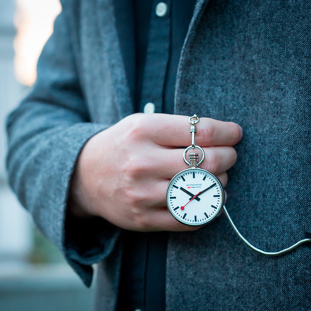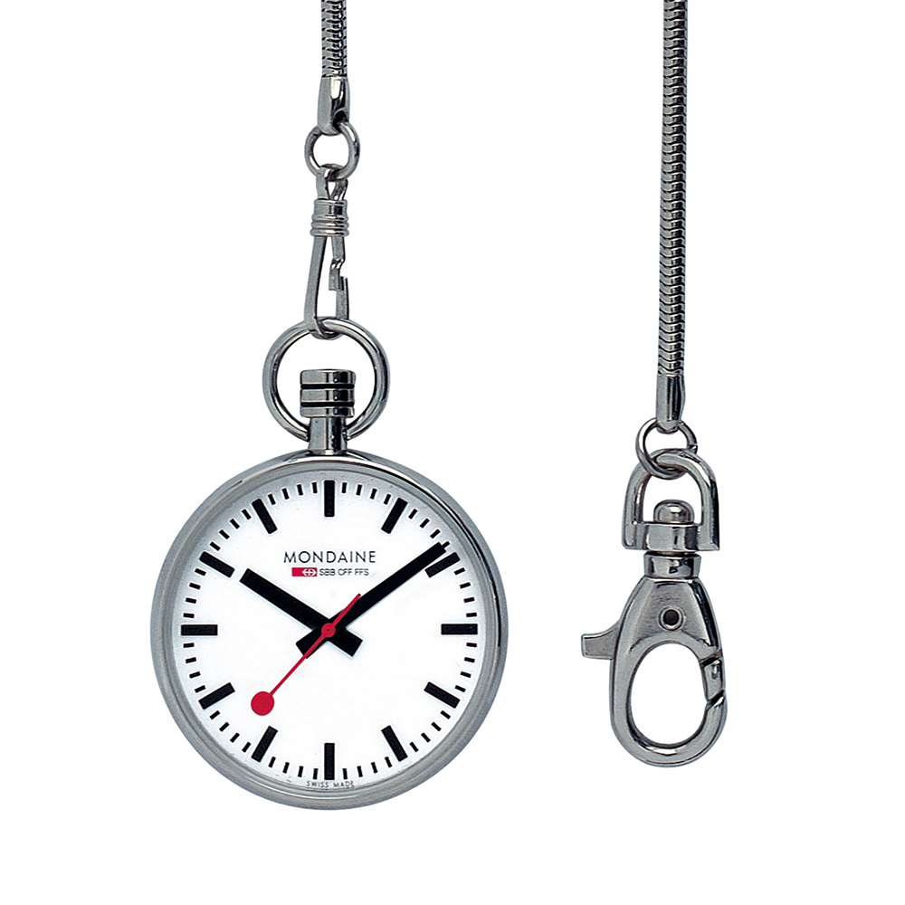 1986年,瑞士MONDAINE錶廠獲得瑞士聯邦鐵路局獨家授權,將經典設計完美的由掛鐘轉化為腕錶,在競爭激烈的全球腕錶市場中,MONDAINE 始終將品牌精神定位在”One face – different styles”, 在千變萬化的設計中始終堅持最初也是最美的白底黑刻度再加上紅色圓秒針的經典錶面,恰好呈現出簡單、清晰、易讀性佳的實用風格,平易近人的價格使瑞士國鐵錶成為瑞士超過半數國民皆為擁有的國民錶!