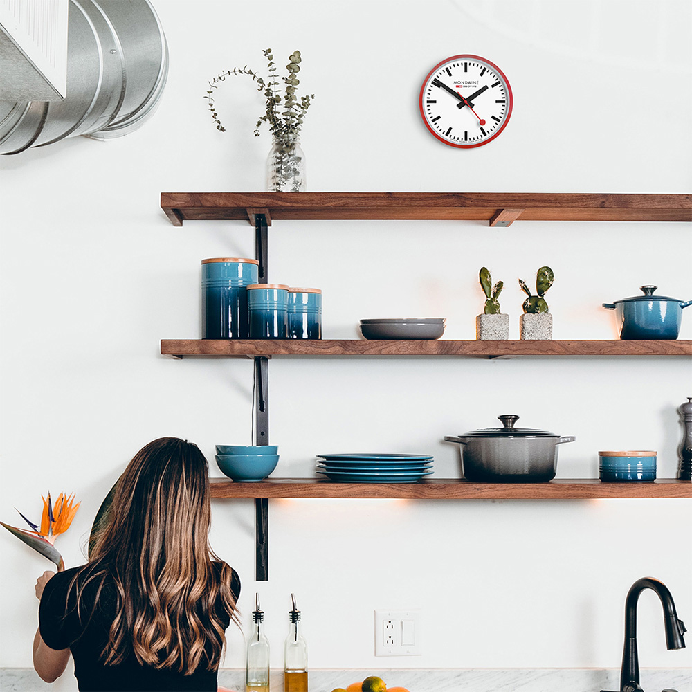 本款直徑為25cm的家用掛鐘是歷年來最為暢銷的經典產品之一。它完美復刻了瑞士鐵路掛鐘的經典設計,以純粹的極簡主義風格(minimalistic design),成為當代家居、商業空間或辦公室掛鐘的最佳選擇。