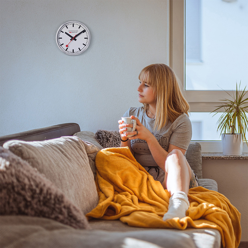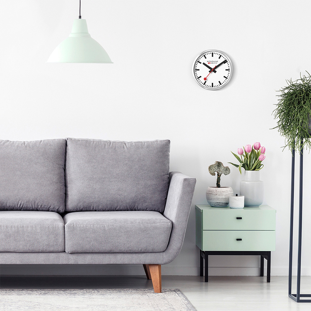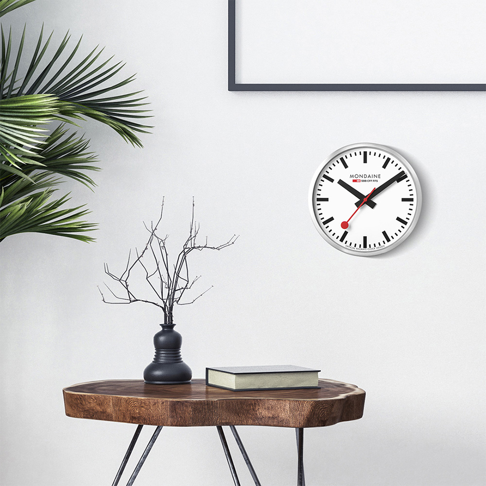 本款直徑為25cm的家用掛鐘是歷年來最為暢銷的經典產品之一。它完美復刻了瑞士鐵路掛鐘的經典設計,以純粹的極簡主義風格(minimalistic design),成為當代家居、商業空間或辦公室掛鐘的最佳選擇。