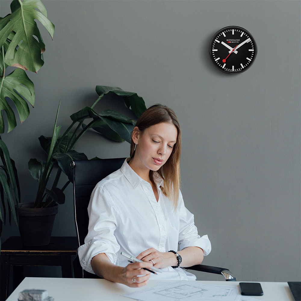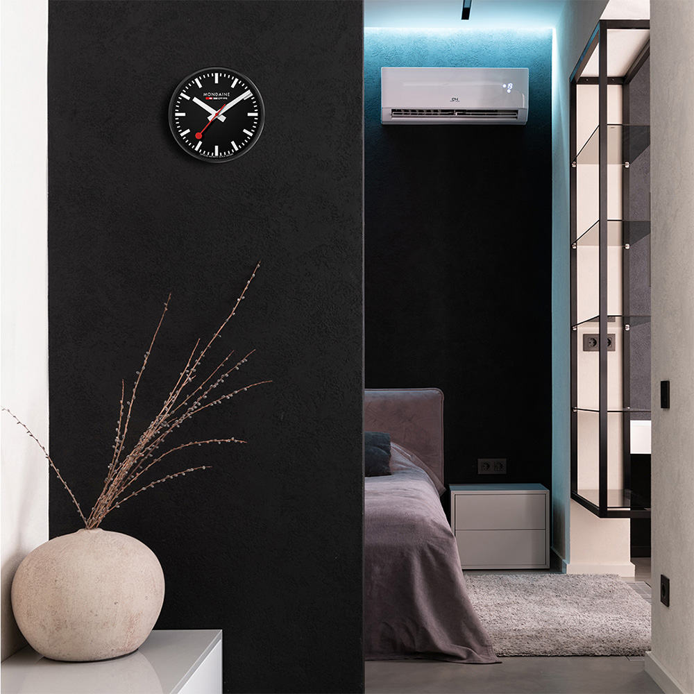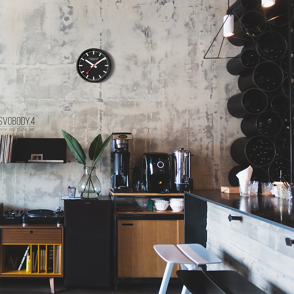 本款直徑為25cm的家用掛鐘是歷年來最為暢銷的經典產品之一。它完美復刻了瑞士鐵路掛鐘的經典設計,以純粹的極簡主義風格(minimalistic design),成為當代家居、商業空間或辦公室掛鐘的最佳選擇。