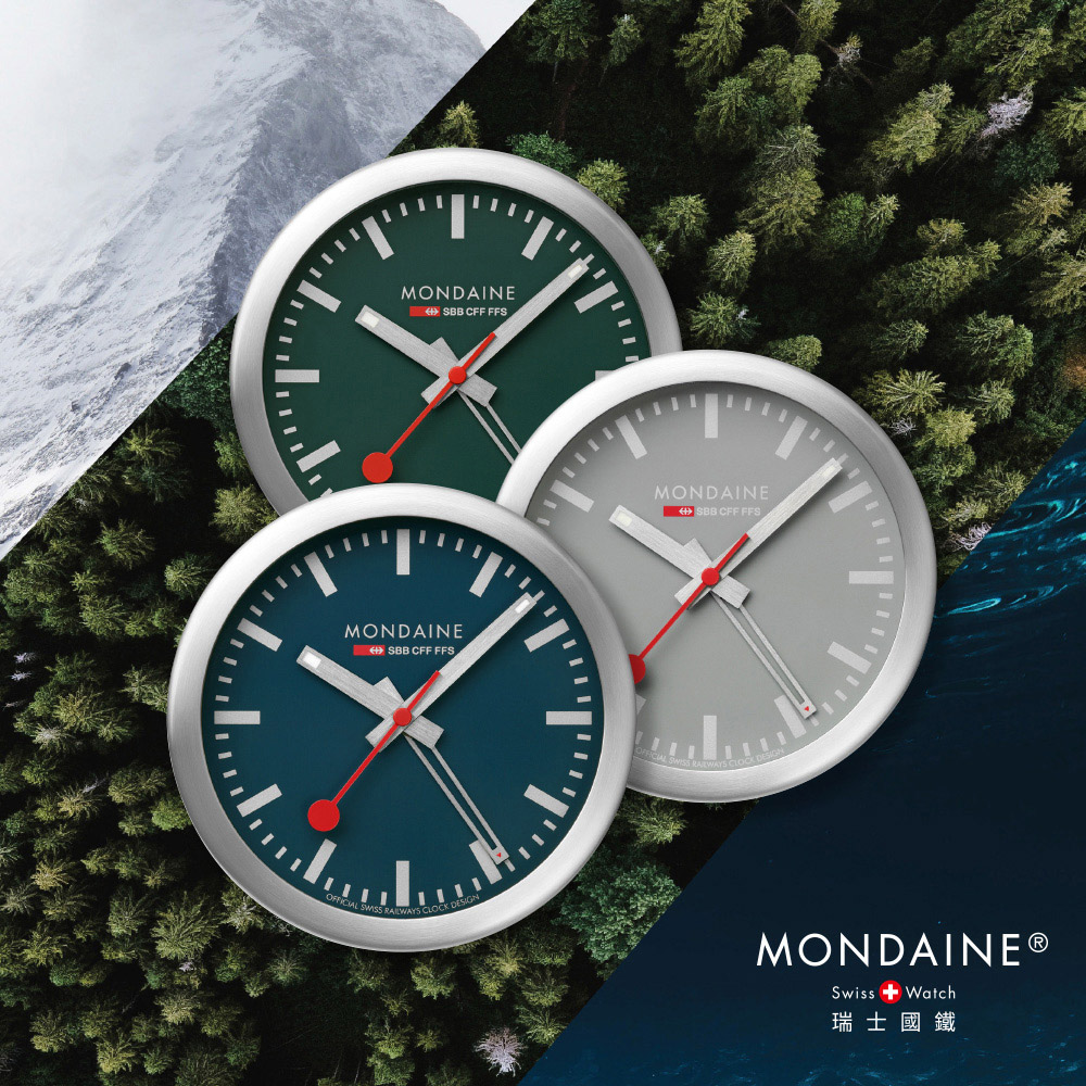 特別推出兩用桌鐘系列新品,完全採用生命之母 - 地球的顏色。每種顏色都可以追溯到自然,並暗示其整體之美。瑞士國鐵透過這個主題作為出發點,發想出以下幾種顏色。我們特別挑選了深海藍、森林綠以及大地灰等三個顏色,作為鐘面配色,輕鬆點綴您的居家空間,甚至是辦公空間也能輕鬆轉換氛圍。