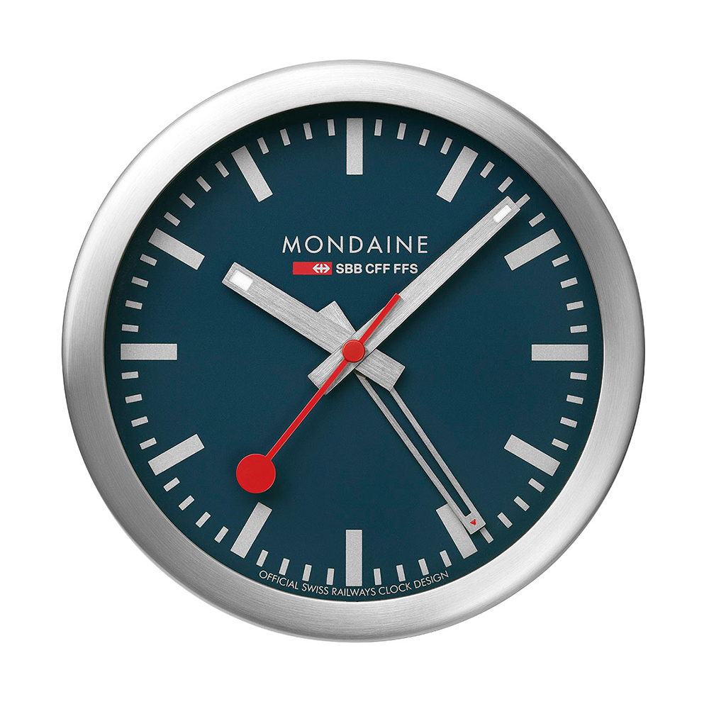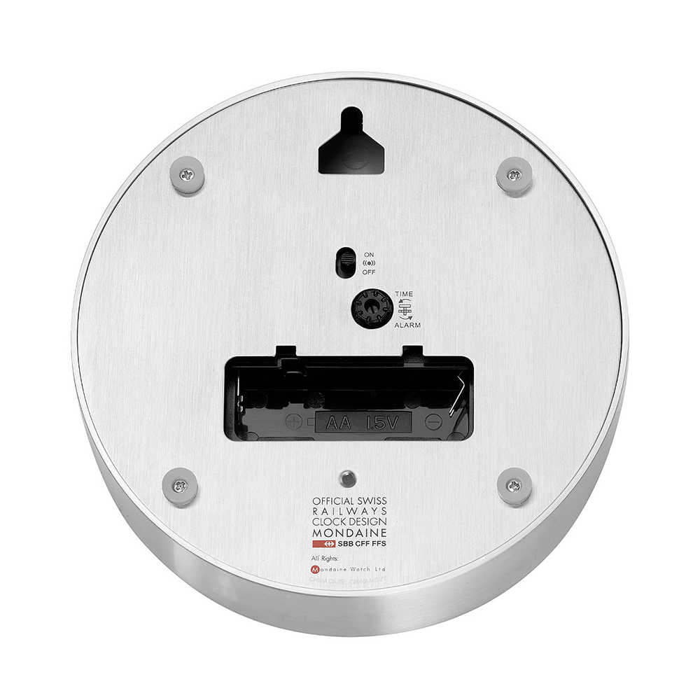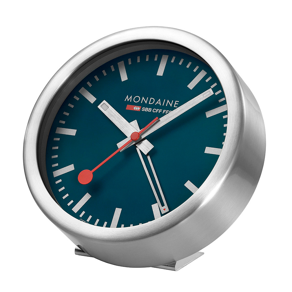 MONDAINE 瑞士國鐵兩用鬧鐘,一貫清楚易讀的鐘面設計,附有鬧鈴功能。恰好的尺寸,可以懸掛在面積較小的牆柱或房間,或使用隨附的L型鋁合金支架,立於桌面作為桌鐘使用,時時刻刻給您最準確的計時。
