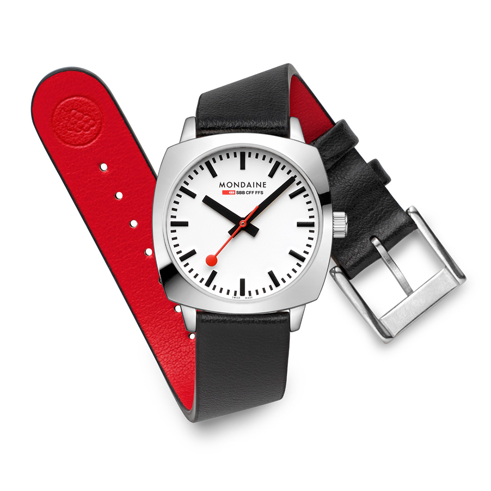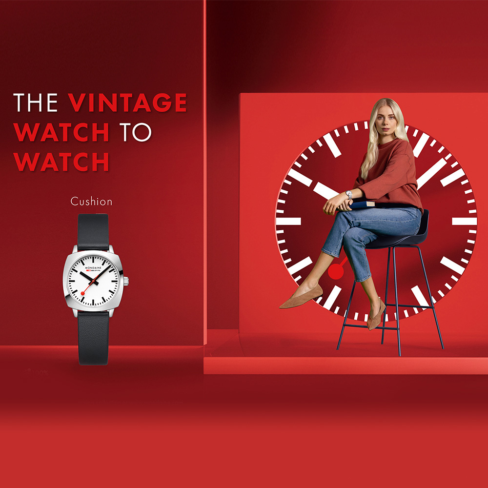 Mondaine 推出超當代設計風格的系列腕錶 - 方圓Cushion。 41、31mm兩種不同尺寸錶款,經典瑞士鐵路大鐘錶盤搭配過目不忘的紅色棒棒糖型秒針,裝載於一枚全新打造的方圓造型錶殼內。此系列靈感源自於Vintage復古風格,外方內圓的造型,也象徵著東方哲學中圓融處世的寓意。