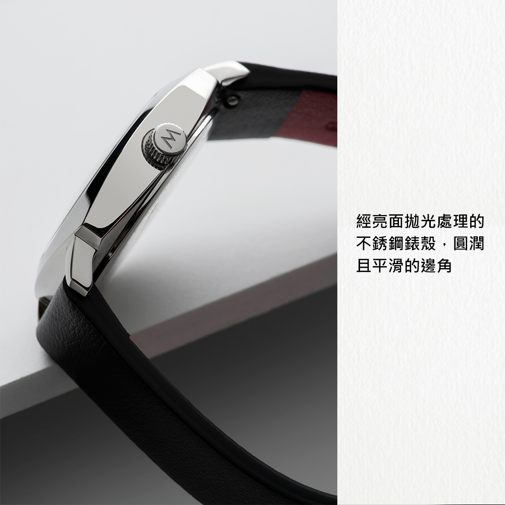 Petite Cushion: Organic Shapes Meet Femininity 31mm尺寸的Petite Cushion錶款是專為女性而設計的一枚完美錶款。她能讓您優雅地配戴在纖細的手腕上。以高拋光亮面不鏽鋼打造的錶殼搭載白色錶盤,並依照款式不同提供3種精緻的錶帶選擇:Vegan純素皮革錶帶(黑色或紅色)以及高質感的米蘭式不鏽鋼鏈帶。 我們的純素皮革原料出自於義大利葡萄酒的有機副產品:在釀酒過程中所有殘留下來的一切物質:包含葡萄渣、莖、種子和皮等,都能夠重新回收利用並製作成皮革原料,真正實踐升級再造(Upcycling)、和零殘忍的非動物製品(Non-animal products)的永續價值。